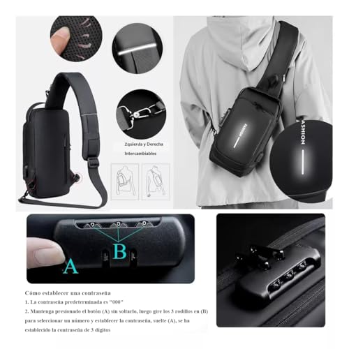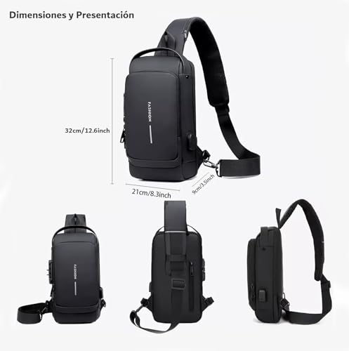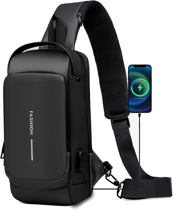 RUAKIVA - Men's Shoulder Bag, Men's Shoulder Bag, Waterproof Backpack, Anti-Theft Men's Bags with USB, Crossbody Backpack, Travel Backpacks, Suitable for Daily Use, Travel, Shopping and Other Occasions,
