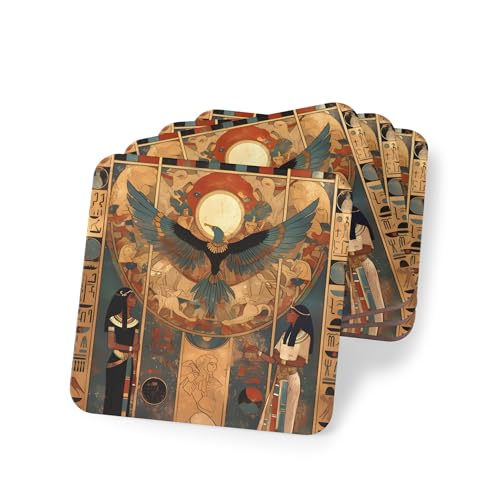 Generic - مجموعة قواعد اكواب مطاطية - قواعد اكواب مربعة بتصميم قرص الشمس المجنح المصري القديم - قواعد اكواب فرعون مرنة غير قابلة للانزلاق لديكور الطاولة والمكتب - مجموعة من 4 قطع