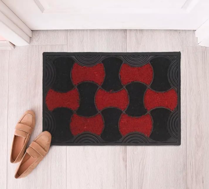 Generic - دواسة باب مستطيلة من المطاط × جوز الهند، اسود واحمر، 40 × 60 سم