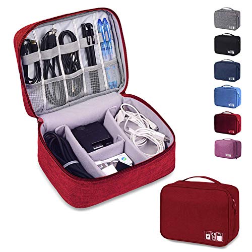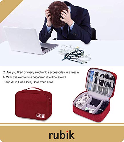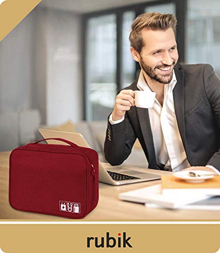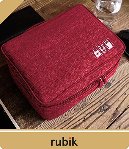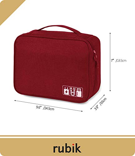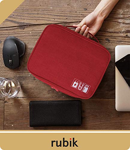 Rubik - روبيك شنطة حمل مضادة للماء لتنظيم الالكترونيات - شنطة تخزين ملحقات السفر العالمية للشاحن والكابلات وسماعات الاذن وايباد ميني والموبايل وبطاقة SD والباور بانك - احمر واين، ميش