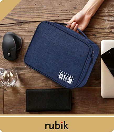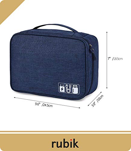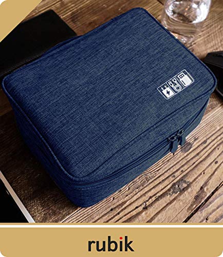 Rubik - rubik electronics organizer waterproof carrying bag - travel gadgets universal accessories storage case for charger, cables, earphone, ipad mini, sd card, power bank - navy blue, RTMCBNABL-01, RTMCB