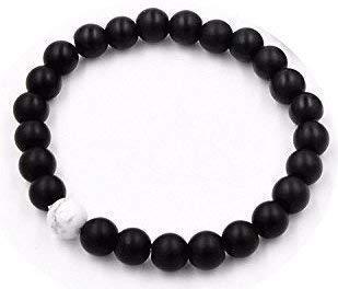 RUDRADIVINE - RUDRADIVINE Onyx Bracelet with Howlite 9 mm Natural Reiki Healing Stone Bracelet, Stone, Onyx Howlite