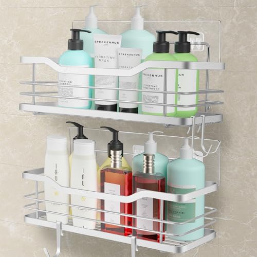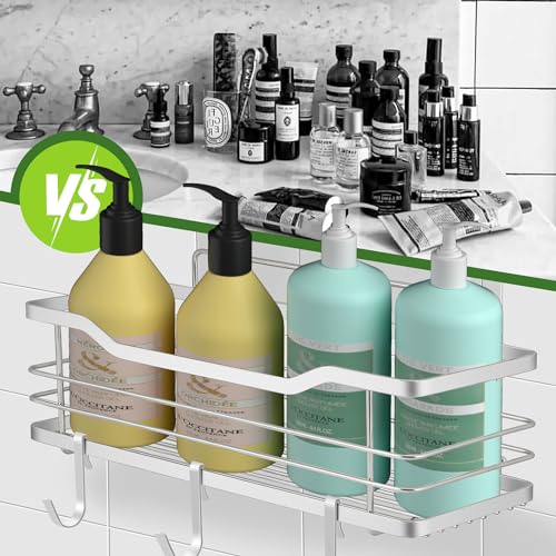 - 【Powerful Adhesive & 40 lbs Load Capacity】This shower shampoo holder adopts the latest updated traceless transparent adhesive, which is stable and durable. With a load capacity of up to 40 pounds, it is ideal for bathroom accessories.