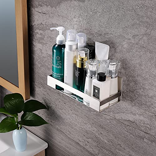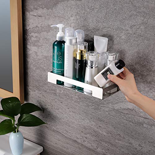 - Large capacity stainless steel shower shelf: the bathroom shelf without drilling can be placed with shampoo, skin care products, toothbrush cups and other bathroom accessories.