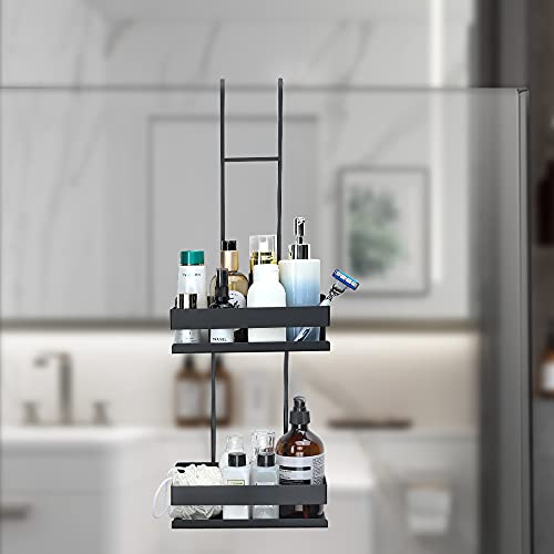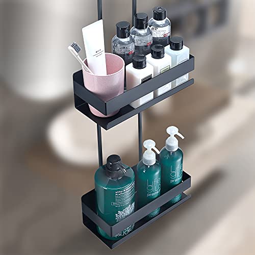 RUICER - Shower Shelf Double No Drilling Shower Basket for Hanging Shower Shelf Stainless Steel for Bathroom Black