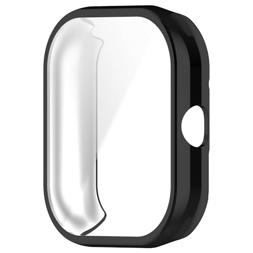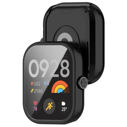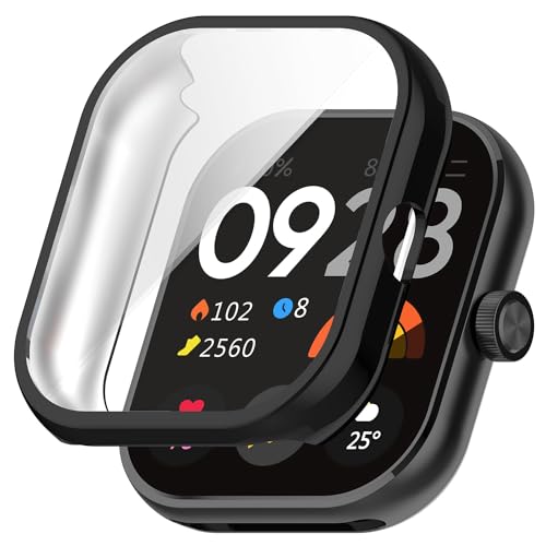 RUIIOCVKK - جراب حماية كاملة لساعة ريدمي ووتش 4 من رويو سي في كيه كيه، مطلي بمادة بولي يوريثين حراري، سهل الارتداء والخلع، حساسية للمس، مقاوم للصدمات، منع السقوط، غطاء حماية لساعة ريدمي ووتش 4 (اسود + شفاف)