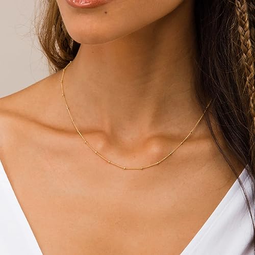 Rumgey - Dainty Choker Necklace for Women 18K Gold Plated Satellite Necklaces Cute Dot Chain Simple Gold Necklace Everyday Necklace to Match Exquisite Jewelry Gifts for Mom Girlfriend