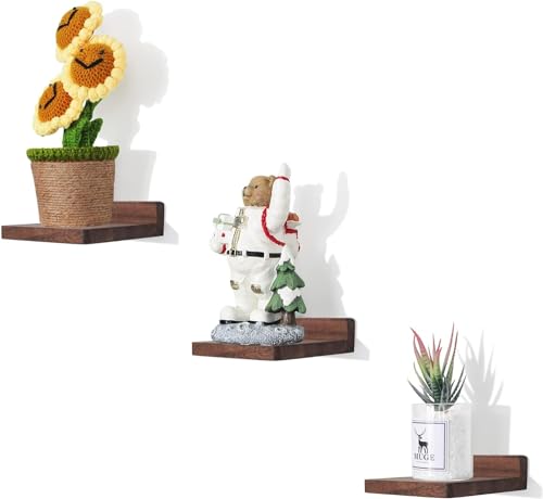 Runam Woods - Modern Small Floating Wall Shelves for Bedroom Kitchen Bathroom Living Room Solid Wood Shelf Set of 3. (Dark Walnut)