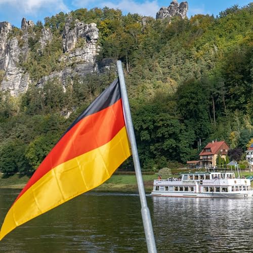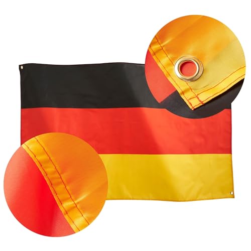 Runesol - علم ألمانيا، راية دويتشلاند بـ 4 حلقات وعراوي نحاسية في كل زاوية ليوم الوحدة وكأس العالم من رونيسول، أعلام ألمانية مقاومة للماء للاستخدام الداخلي والخارجي - مقاس 91 سم × 1.52 م