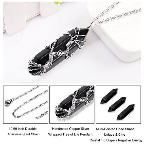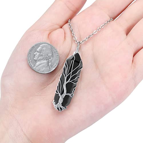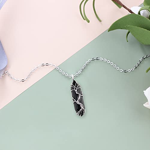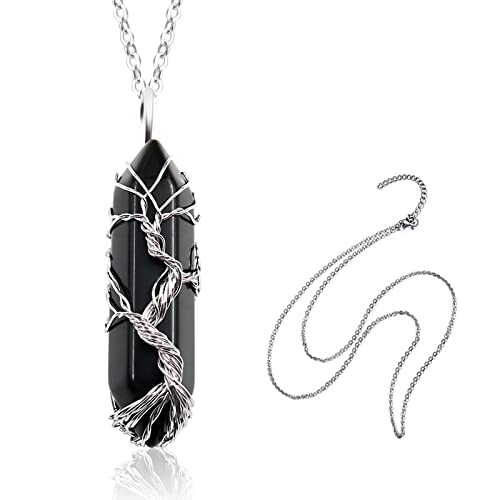 Runmeihe - سلسلة من احجار الجمشت والكريستال والكوارتز الطبيعي واحجار كريمة بدلاية بتصميم شجرة الحياة ملتف للعلاج والحظ الجيد مناسبة للنساء لون فضي, نحاس
