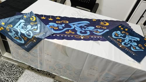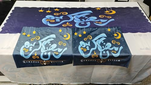 Generic - طقم RUNNER قطيفة رسومات رمضان مكون من 3 قطع مفرش RUNNER متر ونص و2 كفر كوشن 40 فى 40 مطبعه وش ووهر سوسته سحريه الوان متعدده
