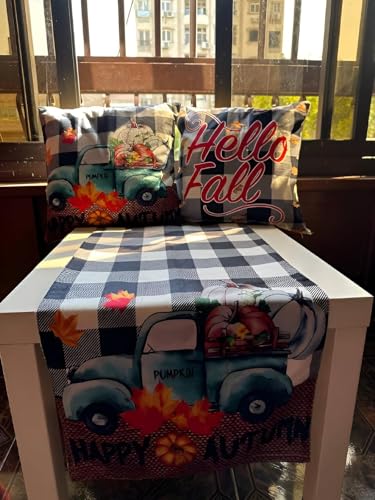 Generic - Runner - Autumn decorative table runner with matching cushions and washable covers, breathable soft fabric, ideal for living room or bedroom styling, size 20x36 multipurpose set