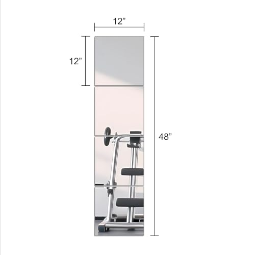 Ruomeng - Ruomeng Full Length Mirror Tiles - 12 Inch x 4Pcs Frameless Wall Mirror Set Make Up Mirror for Home Gym Vanity Bedroom, Living Room