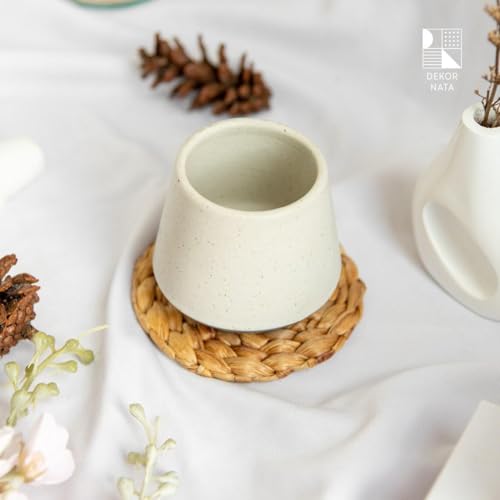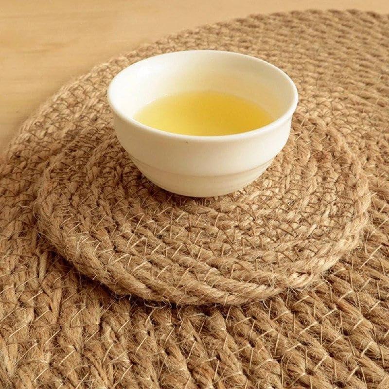 - Crafted from 100% natural jute fibers, this handwoven table mat adds a warm rustic and bohemian touch to your home. Eco-friendly and completely safe for children, it perfectly blends natural simplicity with modern elegance.