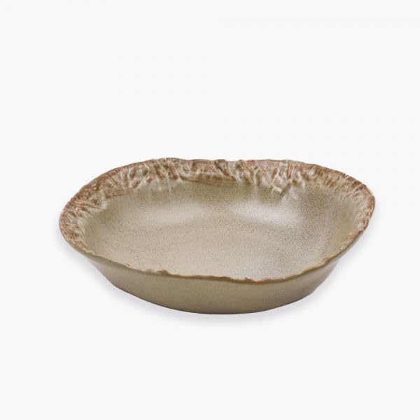 Generic - Rustic Porcelain Serving Bowl, Irregular Edge Design, Beige