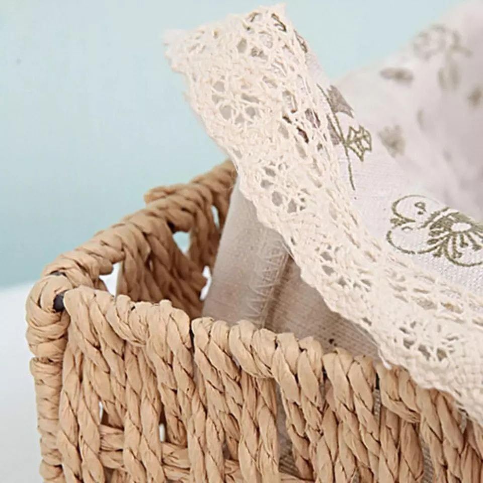 - Decorative & Functional Design: The baskets feature soft cotton fabric lining and a delicate lace trim that adds a refined touch. Use them as bathroom organizers, living room décor, or dressing table storage