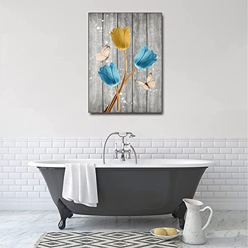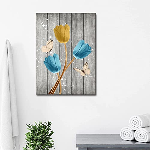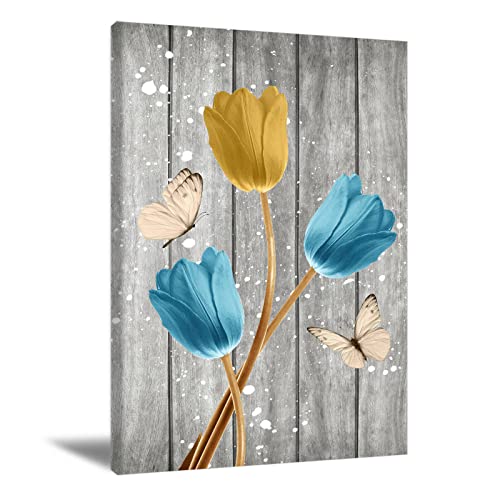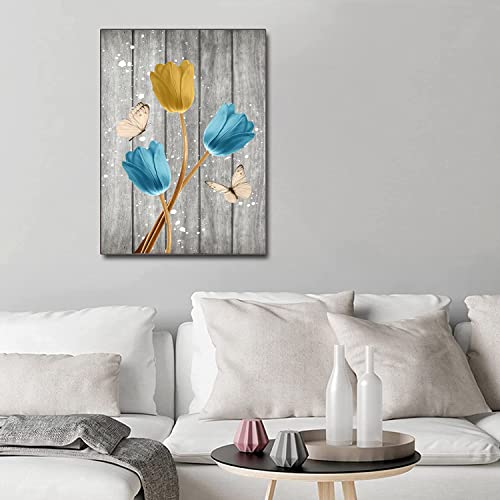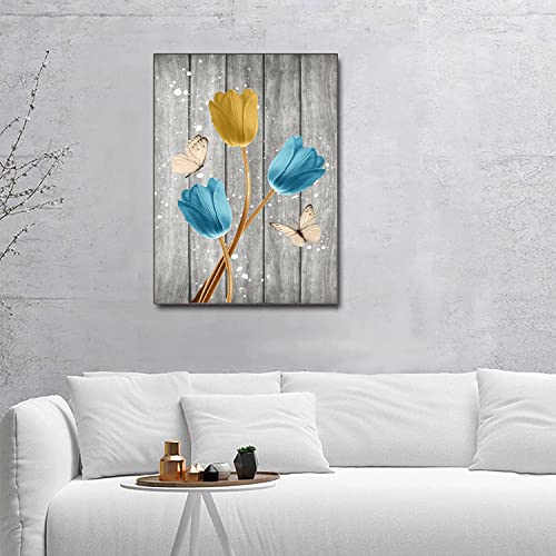 LAKEXINMART - لوحة فنية جدارية على شكل زهور توليب ريفية، ملصق زهور توليب، فن ديكور، فراشات، عمل فني، طباعة زهور على قماش، لوحة فنية لغرفة المعيشة وديكورات منزلية ريفية عصرية، مقاس 40×60 سم، بدون إطار