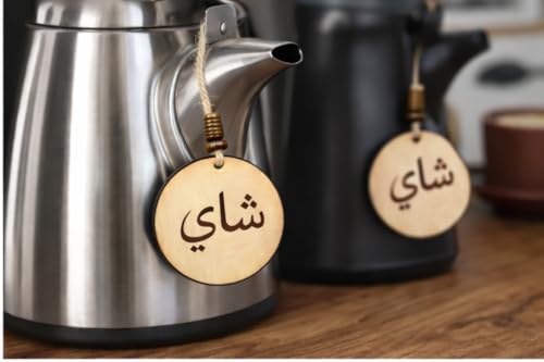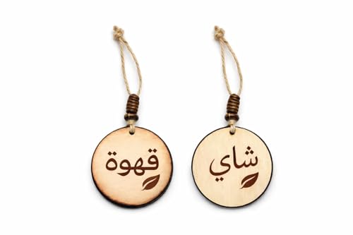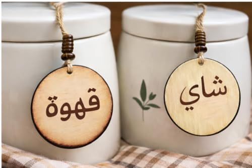 Generic - بطاقات خشبية ريفية لبرطمانات القهوة والشاي - دلايات محفورة باللغة العربية والانجليزية مع حبل من القماش الخشن - ملصقات مطبخ مزخرفة (عربي)