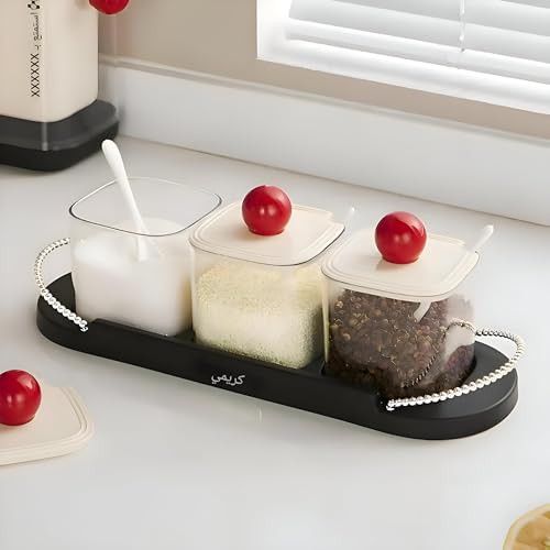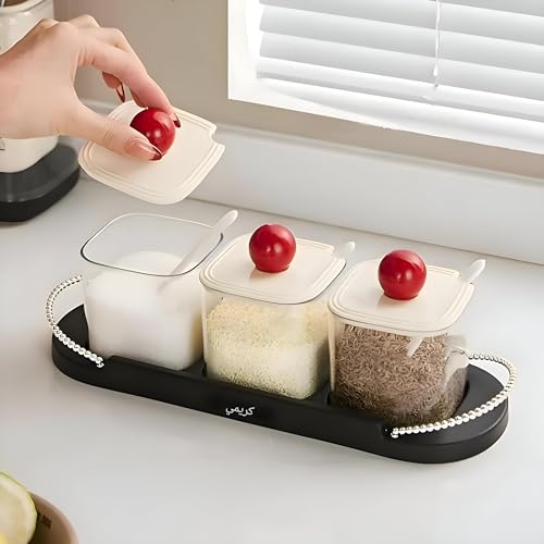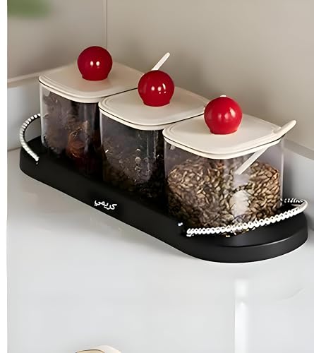 - This 3-piece set of crystal-clear acrylic jars combines functionality and elegance, transforming your kitchen into a neat, stylish space by offering versatile storage solutions for spices, sauces, nuts, pickles, sugar, tea, salt, broth powder, cornstarch, pepper, and other seasonings, keeping everything fresh and accessible while reducing countertop clutter.