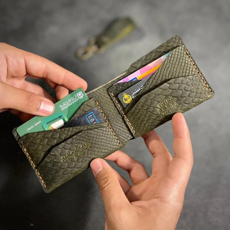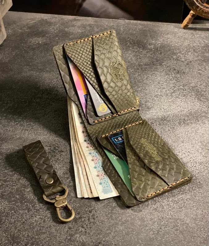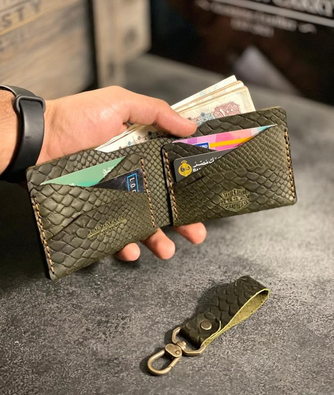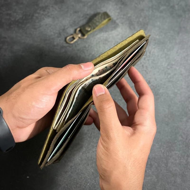 Dusty Leather - Rusty Leather Legendary Enfold Wallet, Handmade Genuine Cowhide Leather Wallet with 6 Card Slots and Spacious Cash Compartment, Slim Durable Bifold Wallet for Daily Use, Smart Compact Design - Green