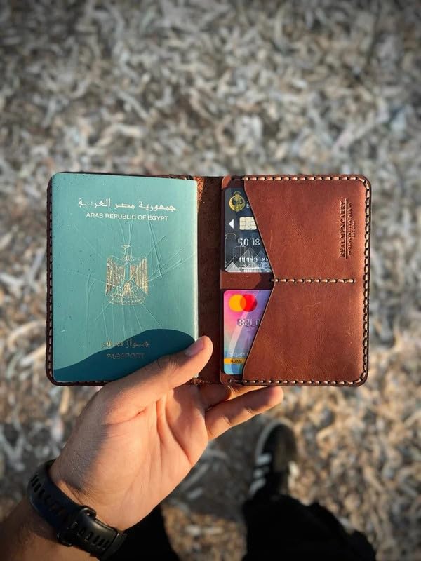 Dusty Leather - Rusty Leather Passport Holder, Handmade Genuine Leather Passport Cover with 2 Card Slots and Spacious Interior for Travel Documents and Tickets, Slim and Durable Leather Travel Wallet - Brown