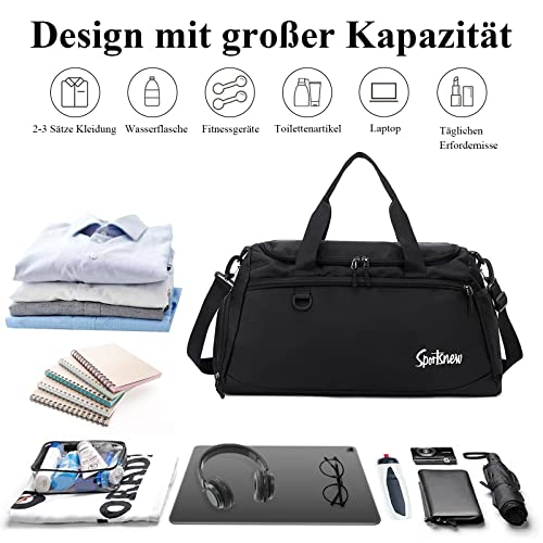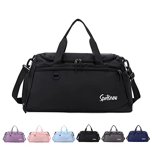 RUYI - شنطة سفر رياضية للرجال والنساء سعة 35 لتر مع جيب للاحذية وحجرة مبللة مقاومة للماء لعطلة نهاية الاسبوع تدريب خفيفة الوزن للرياضة وصالة الالعاب الرياضية والسفر واليوغا قماش أسود