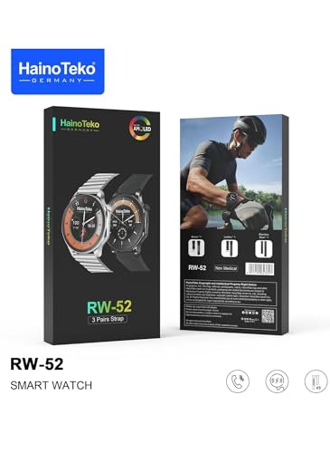 Generic - ساعة هينو تيكو الذكية RW-52- شاشة AMOLED عالية الدقة، مقاومة للماء بمعيار IP68، مع 3 أشرطة قابلة للتغيير، دعم المكالمات وتتبع صحي متقدم.