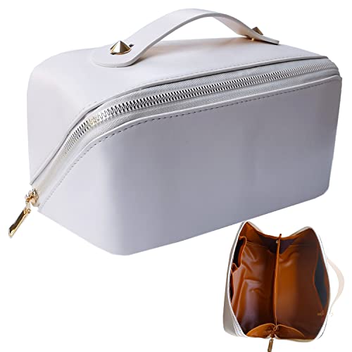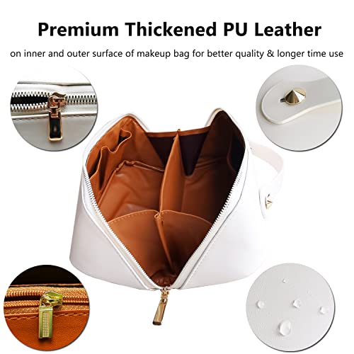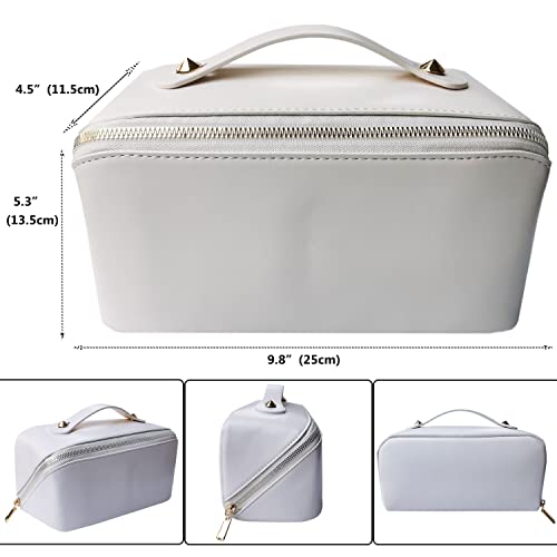 Rwoyurr - شنطة مستحضرات تجميل من الجلد الصناعي رويور لون ابيض للسفر بسعة كبيرة جلد صناعي