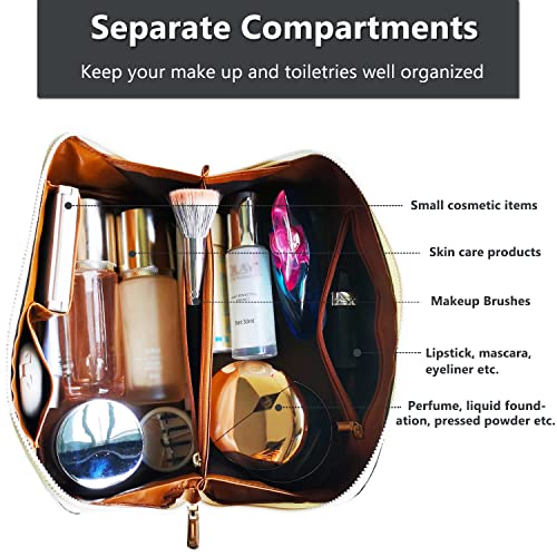 - هدية مثالية - حقيبة المكياج المتينة ذات السعة الكبيرة تحمل المكياج وأدوات النظافة بشكل مثالي مع الحفاظ على شكلها الأنيق. سعة كبيرة ولكن حجم صغير للسفر. حقيبة مكياج تحلم بها كل سيدة! هدايا مثالية للأصدقاء والعائلة في أعياد الميلاد وعيد الحب والكريسماس!
