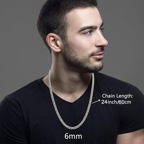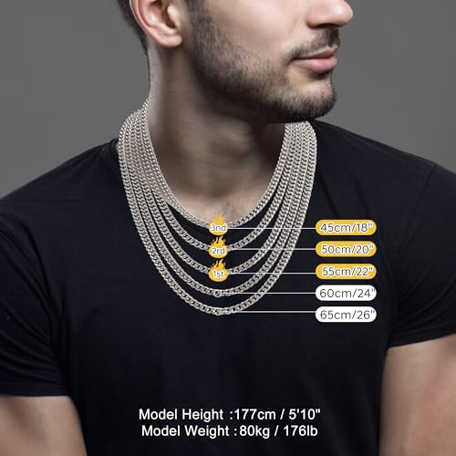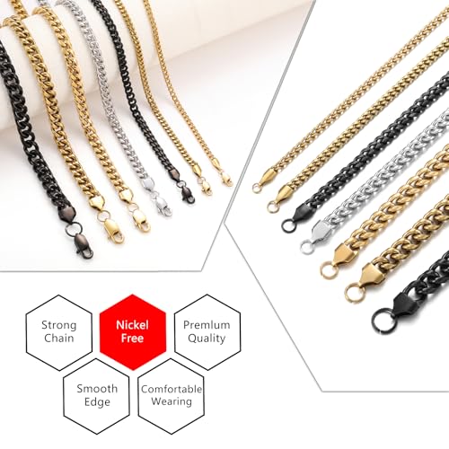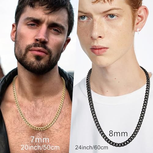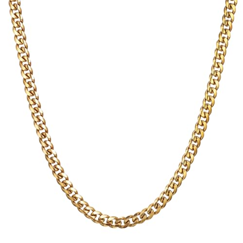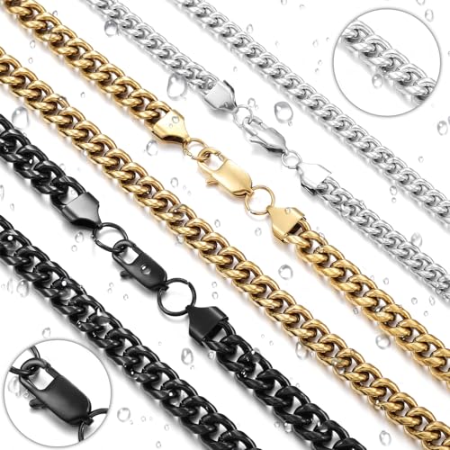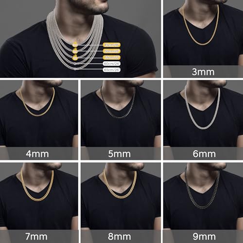 RWQIAN - RWQIAN Men's Curb Chain 3 mm - 8 mm Wide Stainless Steel Silver/Gold/Black Cuban Necklace Link Chain 14K Gold Plated Cuban Link Chain Length 45-65 cm Gift for Men and Women