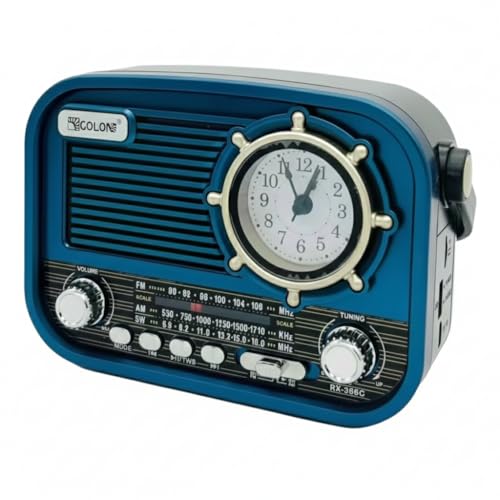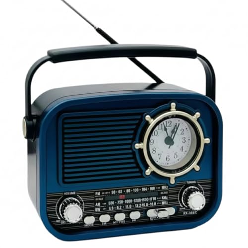 Generic - RX-366C Retro Portable Radio with Music Player, FM/AM/SW 3 Bands, Bluetooth, USB/TF, Clock, Rechargeable Battery, Built-in Speaker