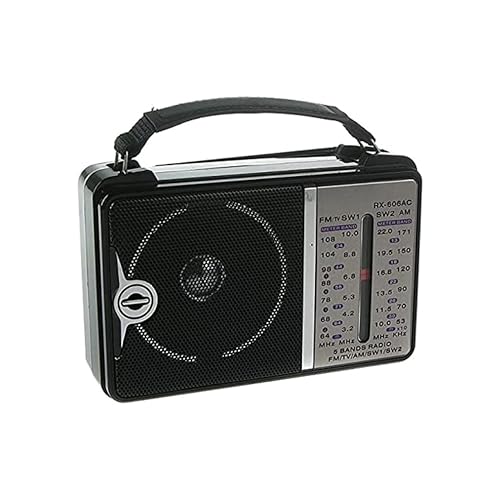 Generic - RX-606AC Portable Radio, 5 Bands FM/TV/AM/SW1/SW2, Black, Handheld Design with Carrying Handle