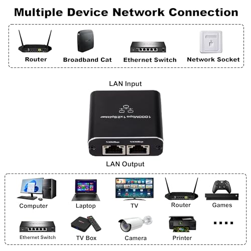 - 𝗪𝗜𝗗𝗘 𝗖𝗢𝗠𝗣𝗔𝗧𝗜𝗕𝗜𝗟𝗜𝗧𝗬: Rynli Ethernet Splitter is compatible with a variety of network cables, including Cat8, Cat7, Cat6, Cat5e, and Cat5. It seamlessly integrates with hubs, switches, TVs, routers, and computers. Enjoy exceptional durability and stability while facilitating heat dissipation, making it an ideal choice for any home network setup.