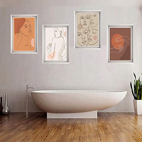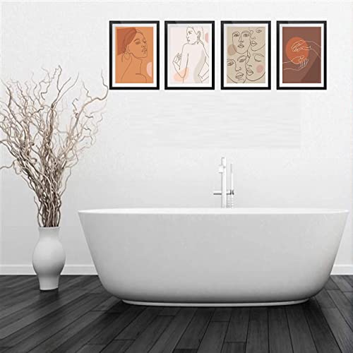 Ryyllh - Modern Art Minimalist Line Woman Portrait Wall Poster Art Prints Set of 4 (8”X10” Canvas Picture) Bathroom Spa Woman Girl Bedroom Art Paintings Living Room Bedroom Home Decor Unframed