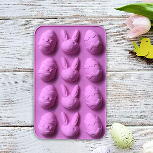 S/J - قوالب سيليكون على شكل ارنب عيد الفصح، امن على الغذاء، لصب الراتنج وصناعة اشكال شوكولاتة ثري دي، لون عشوائي، رائع وغير لاصق، سهل التنظيف، لعجينة السكر والكيك واللبان