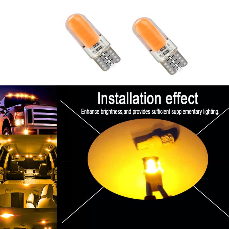 Generic - S M D T10 LED Bulbs Wedge Base for Car Parking Light/Side Indicator/License Plate Lights (Yellow Light, 2pcs)