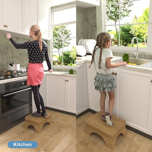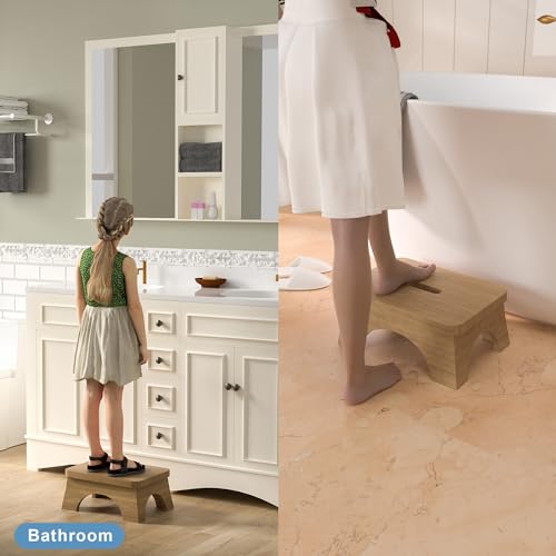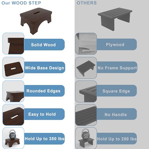 S SEEKINGTAG - Wooden Step Stool for Adults and Kids, Heavy Duty Step Stool Max Load 330 Pounds - No Assembly Required (Light Walnut)