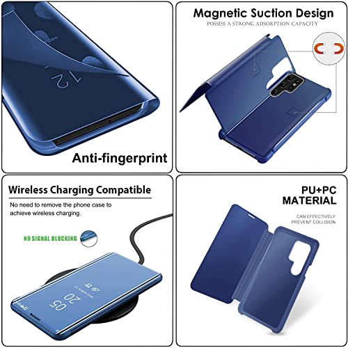 Croazhi - حافظة S23 الترا فليب لموبايل سامسونج جالاكسي S23 شفافة رفيعة مع مسند مغناطيسي بزاوية 360 درجة واقية مضادة للصدمات لسامسونج S23 ازرق بلاستيك