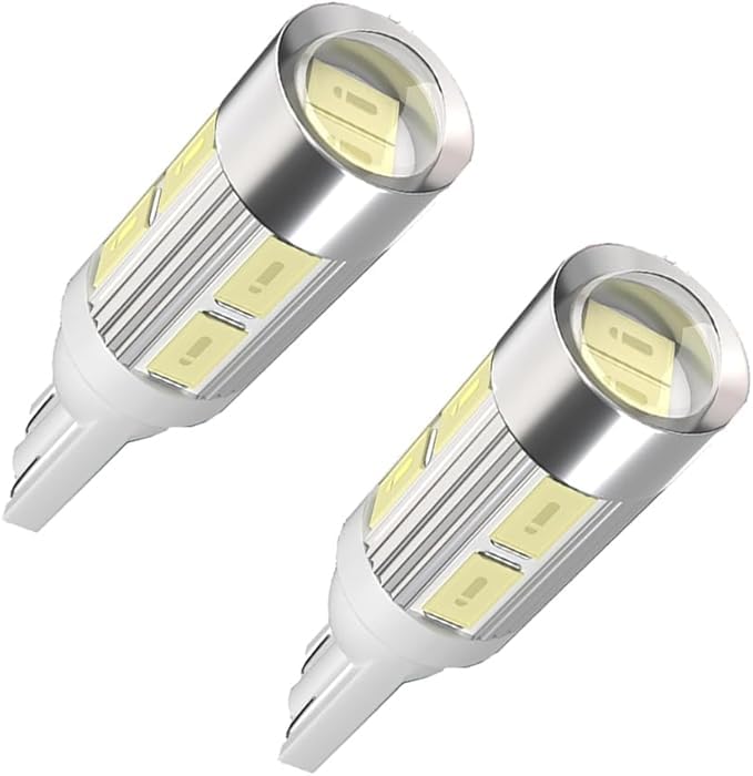 Generic - لمبات ليد عدسة لون ابيض ساطع LED T10 ، فائقة السطوع 12 فولت W5W، لمبة LED بيضاء اس ام دي، مصباح ليد عدسة عالمي مناسبة للسيارات والدراجات النارية والشاحنات - ابيض 10 ليد -عدد 2 قطعة - SACAR