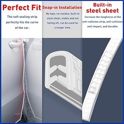 - 【سهلة التركيب】المشابك المعدنية موجودة داخل المطاط الناعم ومصممة بانحناء ذو شكل عشوائي حتي تساعدك في التركيب بسهولة، لا تحتاج إلى أي صمغ فقط اضغط وستثبت المشابك بإحكام. سيكون باب سيارتك نظيف للغاية عند خلعه، بدون أي مواد لاصقة.