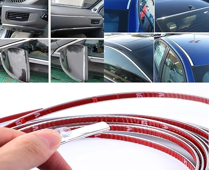 Generic - شريط لاصق خارجي من الكروم للسيارات يمكنك تزيين سيارتك وزيادة الفخامة والأناقة وأيضا لمنع الخدوش مرونة كبيرة سهل التركيب طول 5 متر عرض 1 سم - SACAR