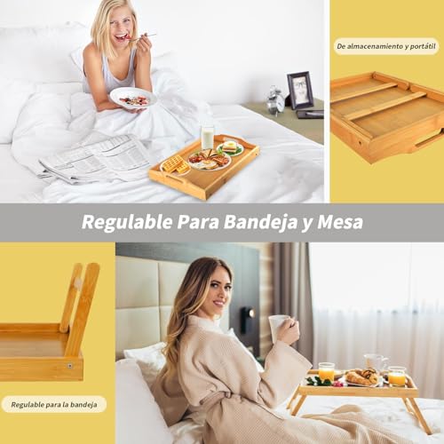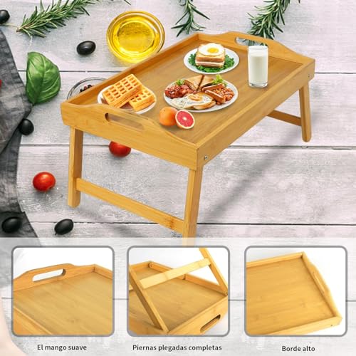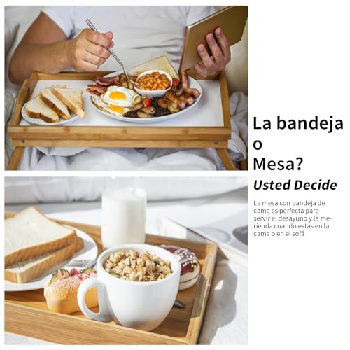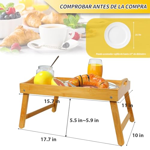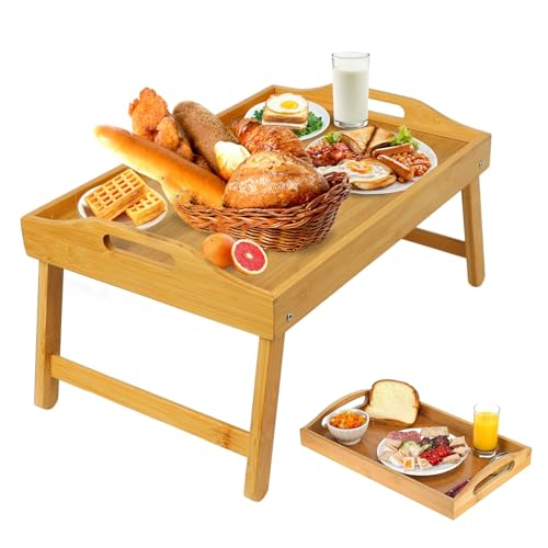 SADOWAY - SADOWAY Bamboo Bed Tray - Bamboo Breakfast Tray with Folding Legs, Portable Lap Tray, Lightweight Decorative Food Tray for Breakfast in Bed