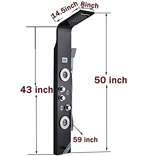 Saeuwtowy - Shower Panel Tower System Muti-Function with LED Rainfall Waterfall Head Massage Jets Tub Spout Hand Shower For Wall Type High- End Design Oil Rubbed Bronze Finish