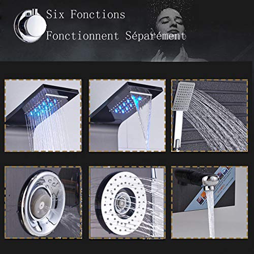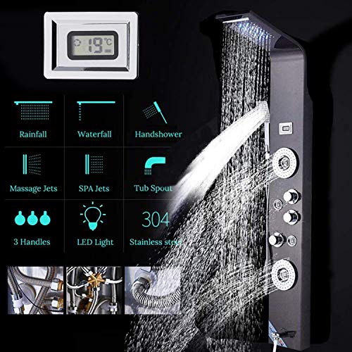 - ❤Feature:High pressure waterfall rainfall Shower system gives you maximum body coverage for a luxurious shower. simulating a natural SPA rain in your bath,And temperature display that assist you to select the best water temperature,The pressure balance valve cartridge monitors water pressure balance to protect you from scald due to sudden changes of pressure of hot or cold water,easy to install and cleaning,6 functions: rainfall, waterfall,body jets, tub spout, hand shower,temperature display.