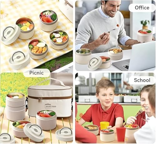 Generic - Safe Travel Lunch Set - Stainless Steel Heat Retention Boxes with Carry Bag, Airtight and Stackable Containers for Families