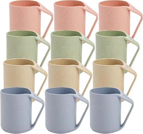 Generic - مجموعة اكواب امنة من قش القمح للمشروبات الساخنة والباردة، اكواب متينة وخفيفة الوزن مع مقبض مريح وملاعق مجانية مناسبة للمطبخ المنزلي