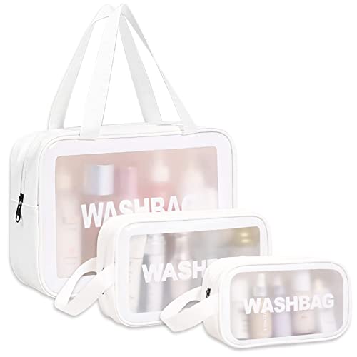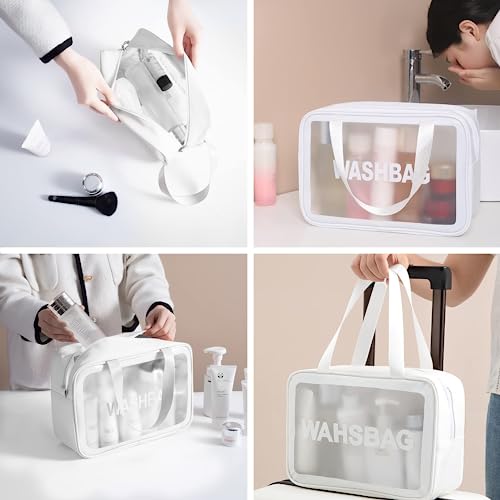 SafeSir - شنطة سفر لادوات الزينة للنساء والرجال من سيف سير - شفافة ومقاومة للماء ومحمولة ولطيفة - ابيض، بلاستيك