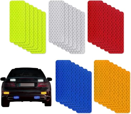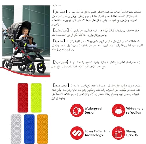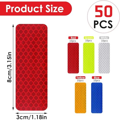 Generic - Safety Reflective Stickers, Self Adhesive Reflective Stickers, Cars Store Warning Reflective Stickers, Waterproof Reflective Stickers for Cars, Motorcycles, Stroller (50 Reflective Stickers 5 Colors)