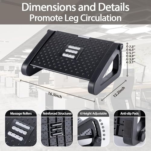 Sagreeny - مسند قدم بارتفاع قابل للتعديل يوضع تحت المكتب للعمل بتصميم مريح من ساجريني مسند قدم مع بكرة تدليك للقدم يوضع تحت المكتب