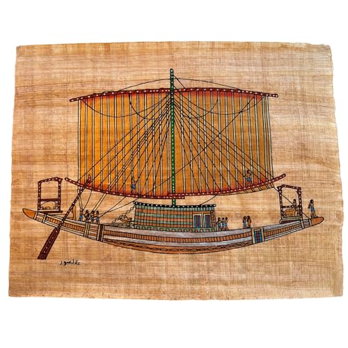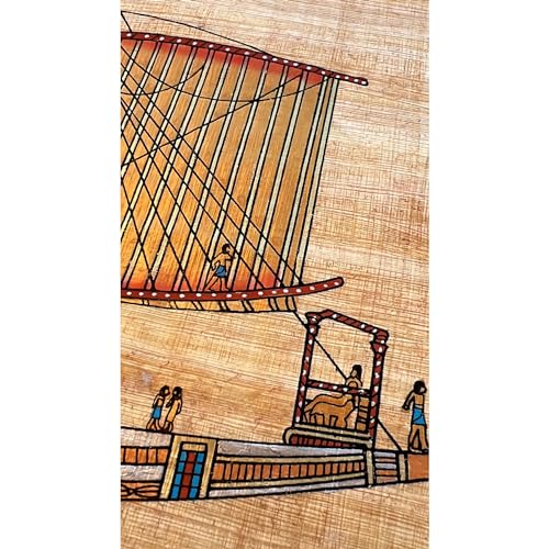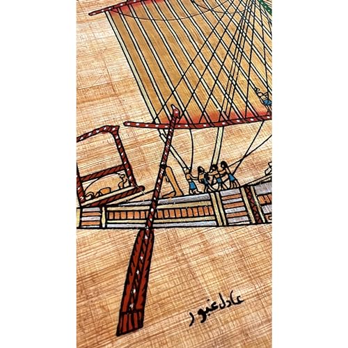Ancient Egyptian Paintings - لوحة جدارية فنية لقارب شراعي للمصريين القدماء على ورق بردي مصري، مقاس 9×13 سم